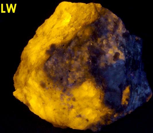 Marialite-Meionite Scapolite "Wernerite" (fluorescing yellow LW and SW), Muscovite mica, and some Caliche (fluorescent blue SW and LW).